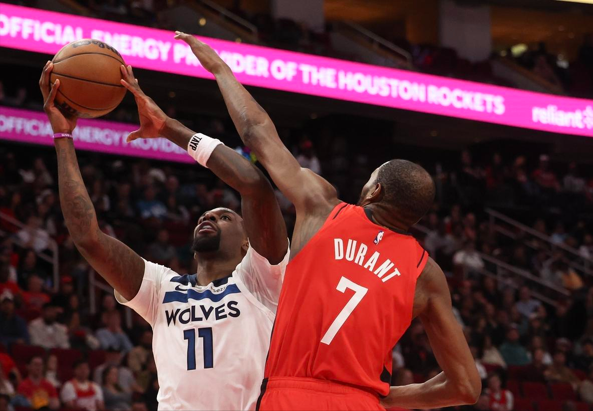 这场比赛,火箭取胜的最大功臣,毫无疑问是运动战18投11中,拿到赛季新高39分,外加4篮板7助攻2抢断1盖帽的凯文-杜兰特,他不但在进攻端提供了最多的输出,也是关键时刻的定海神针,最后一分钟申京犯满离场,阿杜一人扛起了处理球的重任,为球队拼下了这场胜利。算上这场胜利,KD生涯第38场战胜森林狼,是他对阵所有球队中最多的,无愧是“木狼克星”。